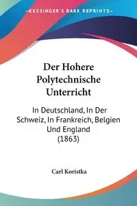 Das Buch ""Der H������here Polytechnische Unterricht: In Deutschland, In Der Schweiz, In Frankreich, Belgien Und England"" von Carl Koristka wurde im Jahr 1863 ver������ffentlicht. Es behandelt die Organisation und Methoden des h������heren polytechnischen Unterrichts in verschiedenen europ�����ischen L�����ndern wie Deutschland, der Schweiz, Frankreich, Belgien und England. Der Autor beschreibt ausf�����hrlich die Struktur und den Inhalt der Ausbildung in diesen L�����ndern und vergleicht sie miteinander. Das Buch enth�����lt auch Informationen �����ber die Lehrpl�����ne, die Lehrmethoden, die Pr�����fungen und die Berufsaussichten nach dem Abschluss. Es ist eine wichtige historische Quelle f�����r die Entwicklung des technischen Bildungssystems in Europa im 19. Jahrhundert.This Book Is In German.This scarce antiquarian book is a facsimile reprint of the old original and may contain some imperfections such as library marks and notations. Because we believe this work is culturally important, we have made it available as part of our commitment for protecting, preserving, and promoting the world's literature in affordable, high quality, modern editions, that are true to their original work.
