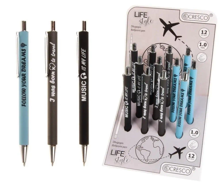 W opakowaniu znajduje się 12 sztuk długopisów, dostępnych w trzech różnych kolorach, a także z trzema tematycznymi ozdobnymi nadrukami. Dzięki temu, każde pisanie staje się nie tylko funkcjonalne, ale również stylowe. Wybierz długopis LIFE STYLE i ciesz się przyjemnością pisania przez długi czas.