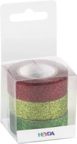 Tasiemki brokatowe zielone i czerwone 3szt - Heyda
