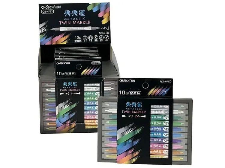 Odkryj nową jakość rysowania z dwustronnymi flamastrami o metalicznych kolorach. Dzięki temu zestawowi możesz stworzyć niepowtarzalne dzieła sztuki, korzystając z dziesięciu wyjątkowych odcieni. Każdy flamaster posiada dwie końcówki, co umożliwia precyzyjne kreowanie zarówno cienkich linii, jak i większych powierzchni.