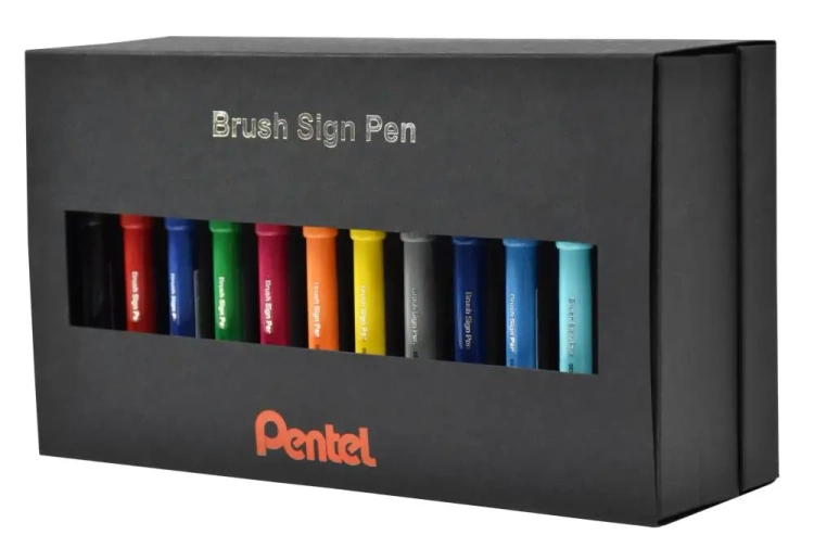 Opakowanie tego zestawu brush penów Pentel jest niezwykle eleganckie i przemyślane pod każdym względem.