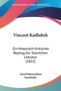 ""Vincent Kadlubek: Ein Historisch-Kritischer Beytrag Zur Slavischen Literatur (1822)"" von Jozef Maksymilian Ossolinski ist ein Buch, das sich mit der slavischen Literatur auseinandersetzt. Es wurde im Jahr 1822 ver������ffentlicht und enth�����lt eine historisch-kritische Analyse von Vincent Kadlubeks Werk ""Chronica Polonorum"". Dabei werden die sprachlichen und kulturellen Einfl�����sse auf die slavische Literatur untersucht und die Bedeutung der Werke f�����r die polnische Kulturgeschichte dargestellt. Das Buch ist ein wichtiger Beitrag zur slavischen Literaturforschung und bietet einen Einblick in die kulturelle Vielfalt der slavischen V������lker.This Book Is In German.This scarce antiquarian book is a facsimile reprint of the old original and may contain some imperfections such as library marks and notations. Because we believe this work is culturally important, we have made it available as part of our commitment for protecting, preserving, and promoting the world's literature in affordable, high quality, modern editions, that are true to their original work.