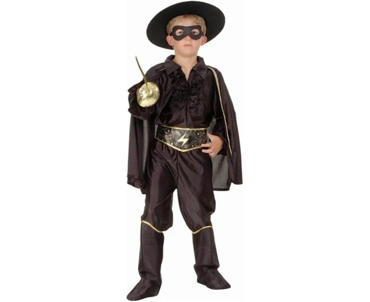 - W skład stroju wchodzą: bluzka, spodnie z nakładkami, peleryna, maska, kapelusz, pasek
