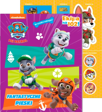 Psi patrol. Ekipa na 102! zawiera zagadki, łamigłówki oraz kolorowanki z ulubionymi bohaterami w roli głównej. W środku również kolorowe naklejki z dzielnymi pieskami! Rezolutne szczenięta Marshall, Rubble, Chase, Rocky, Zuma i Skye oraz dziesięcioletni chłopiec Ryder nigdy nie odmówią pomocy potrzebującym-pomagaj pieskom w ich bohaterskiej misji poprzez rozwiązywanie różnorodnych zadań.