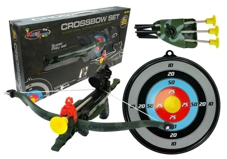 Kusza na Strzałki z przyssawką Kusze zazwyczaj kojarzą się z jarmarkami lub zwiedzaniem zamków, jednak tym razem mamy dla Państwa o wiele bardziej nowoczesne rozwiązanie. Bojowa kusza na strzałki to zabawka, która z łatwością stanie się jedną z ulubionych Twojego dziecka. Zaawansowana konstrukcja naszej Kuszy sprawia, że inne wersje kuszy sklecone z dwóch kawałków drewna pójdą w odstawkę. Główny trzon broni wykonany jest z wysokiej jakości plastiku w kolorze ciemnozielonym - uzyskuje przez to wojskowy charakter. Kusza wyposażona jest w celownik optyczny, a także laserowy - po uruchomieniu czerwona kropeczka wskazuje miejsce, w które celujemy. Najciekawszą funkcją tej zabawkowej kuszy jest półautomatyczny naciąg. Twoje dziecko nie musi się już siłować próbując naciągnąć cięciwę - wykorzystując dźwignię umieszczoną w tylnej części korpusu kuszy linka zostanie automatycznie naciągnięta na gotową pozycję. Oprócz kuszy w skład zestawu wchodzi kołczan w kolorach maskujących, 3 bełty z żółtymi przyssawkami oraz tarcza pozwalająca na trenowanie celnego strzelania. Stylowe opakowanie, w którym otrzymują Państwo zestaw świetnie nadaje się na prezent dla młodego entuzjasty zabawkowych militariów. Wymiary opakowania: 55 cm x 28 cm x 8 cm