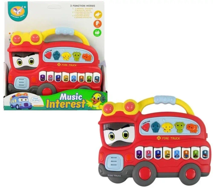 Pianinko w kształcie auta stażackiego ze światłem i dźwiękami.