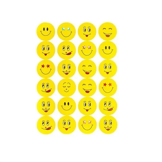 Odkryj zestaw motywacyjnych naklejek z uroczymi, uśmiechniętymi buźkami. Te naklejki o średnicy 1,5 cm mają intensywny, żółty kolor, który z pewnością przyciągnie uwagę.