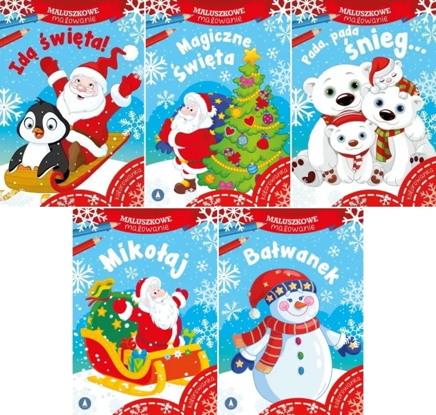 MALUSZKOWE MALOWANIE, czyli blok małego artysty Zestaw ciekawych rysunków i pudełeczko kredek - tyle potrzeba, by rozpocząć wspaniałą zabawę. Zabawę, która ćwiczy sprawność manualną i grafomotoryczną dziecka, rozwija jego wrażliwość na kształty i kolory, a przede wszystkim... daje mnóstwo radości. Raz, dwa, trzy, maluszki kolorują świąteczne motywy!
