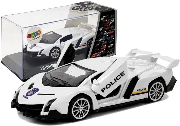 Auto sportowe Policyjne białe z napędem frykcyjnym - Leantoys