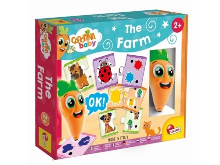 Interaktywny produkt do poznawania farmy przez zabawę w formie quizów. Dzieciom towarzyszy Carotina, która przy każdej poprawnej odpowiedzi radosnymi okrzykami zachęca dzieci do dalszej zabawy. Elementy wykonane z grubej i odpornej na ślinę tektury pozwalają najmłodszym lepiej poznać farmę dzięki logicznym skojarzeniom.