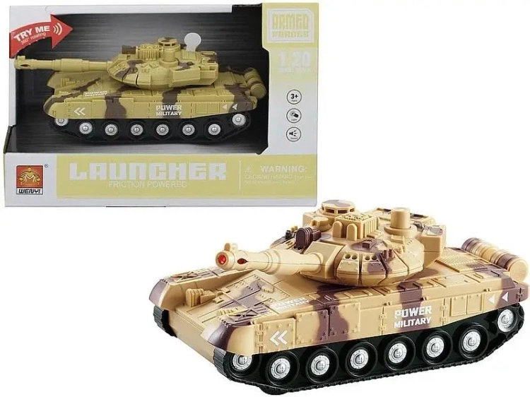 Czołg 1:20. z napędem na koło zam, światło, dźwięk; 23,5x15,5x11cm, W/B