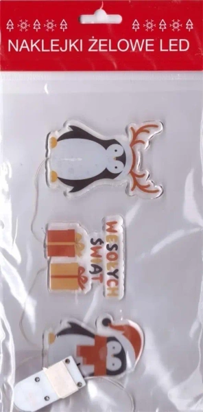 Dekoracyjne naklejki żelowe LED z motywem świątecznym