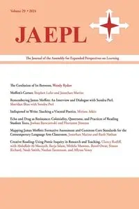 JAEPL Volume 29 • 2024 | THE JOURNAL OF THE ASSEMBLY FOR EXPANDED PERSPECTIVES ON LEARNING, JAEPL, provides a forum to encourage research, theory, and classroom practices involving expanded concepts of language. It contributes to a sense of community in which scholars and educators from preschool through the university exchange points of view and cutting-edge approaches to teaching and learning. JAEPL is especially interested in helping those teachers who experiment with new strategies for learning to share their practices and confirm their validity through publication in professional journals. | CONTENTS OF VOLUME 29: The Confusion of In-Between by Wendy Ryden | MOFFETT'S CORNER: Remembering James Moffett: An Interview and Dialogue with Sondra Perl by Sheridan Blau with Sondra Perl | ESSAYS: Indisposed to Write: Teaching a Visceral Poetics by Miriam Atkin | Echo and Drag as Resistance: Coloniality, Queerness, and Practices of Reading Student Texts by Joshua Barsczewski and Florianne Jimenez | Mapping James Moffett: Formative Assessment and Common Core Standards for the Contemporary Language Arts Classroom by Jonathan Marine and Ruth Nathan | CONNECTING: Creative Reading: Using Poetic Inquiry in Research and Teaching by Clancy Ratliff with Abdullah-Al-Musayeb, Barja Islam, Mithila Mumtaz, Rosol Otear, Simon Richard, Noah Smith, Nuzhat Tarannum, and Allyssa Veney | BOOK REVIEWS: Scholarship as a Source of Innovation/Inspiration by Curt Porter | Becoming-Teacher: A Rhizomatic Look at First-Year Teaching reviewed by Iwona Ionescu | Gamification in Higher Education: A How-to Instructional Guide reviewed by Willa Black | Contributors to JAEPL 29 | Announcement | Parlor Press ad