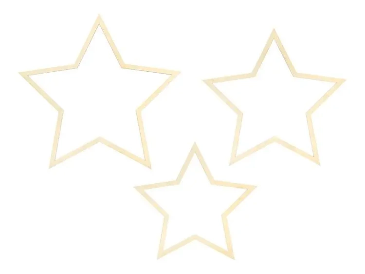 Zawieszki dekoracyjne Gwiazdy wykonane z drewna, zestaw zawiera 3 gwiazdy, wymiar od ok. 35 x 33 cm do ok. 26,5 x 25 cm.(1 op. / 3 szt.)