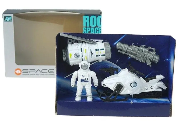 zestaw stacja kosmiczna, astronauta, pojazdy; 25x17x6,5cm, W/B