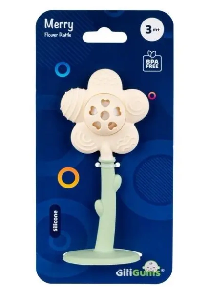 Stojący kwiatek z gryzaczkowymi płatkami wygląda wspaniale, a do tego posiada kilka bardzo przydatnych funkcji! Każdy z płatków ozdobiony jest wypustkami w innym kształcie, które podczas gryzienia będą delikatnie masować obolałe dziąsełka ząbkującego maluszka. Jego długa łodyga, z wypustkami imitującymi listki, ułatwi bobasowi chwytanie zabawki. A to jeszcze nie wszystko! W środku, pomiędzy płatkami, kwiatek kryje niespodziankę w formie grzechotki, więc za każdym razem, gdy maluch nim potrząśnie, usłyszy wesoły odgłos.