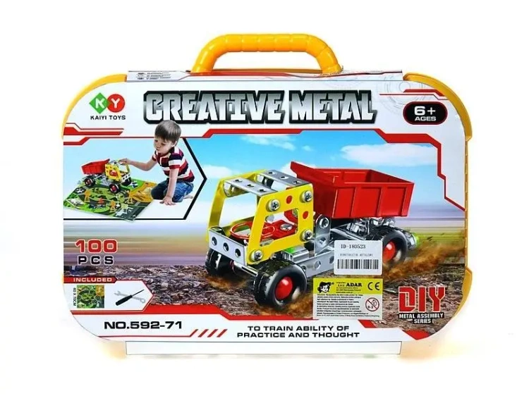 zestaw 100 metalowych klocków do skręcania, z matą z ulicą, w walizce; Box