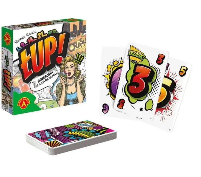 ŁUP! to szybka gra karciana, w której staracie się zbliżyć do łącznej wartości 21 punktów, ale jej nie przekroczyć. Każda karta to cios o różnej sile zadany przeciwnikom - od lekkiego Puk! czy Pac! za 1 i 2 punkty, aż do totalnego łomotu za 7. Po kolei dorzucacie karty do puli leżącej na stole. Puk! Pac! Szast! Prast!... i przed twoim ruchem na stole jest 14 punktów. Idealnie, bo na ręku wciąż masz Łomot!. No to łup! Dokładasz do 21 oczek i zgarniasz wszystko. To twój łup w tej rundzie.