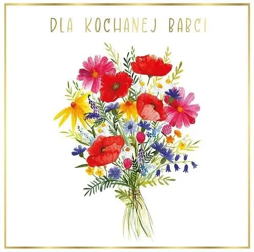 Karnet w formacie 15 x 15 cm. Wydrukowany na wysokiej jakości papierze. Karnet złocony. W zestawie kolorowa koperta.