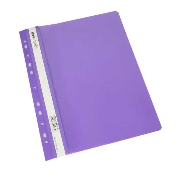 Prezentujemy skoroszyt A4 w odcieniu fioletowym, który wyróżnia się funkcjonalnym designem. Produkt wyposażony jest w perforację, co czyni go niezwykle praktycznym w codziennym użytkowaniu.