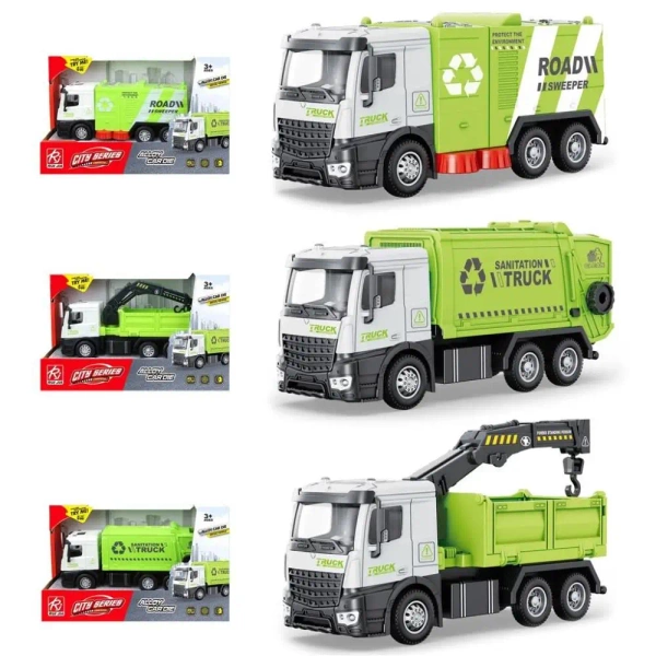 Metalowa śmieciarka ze światłem i dźwiękiem.