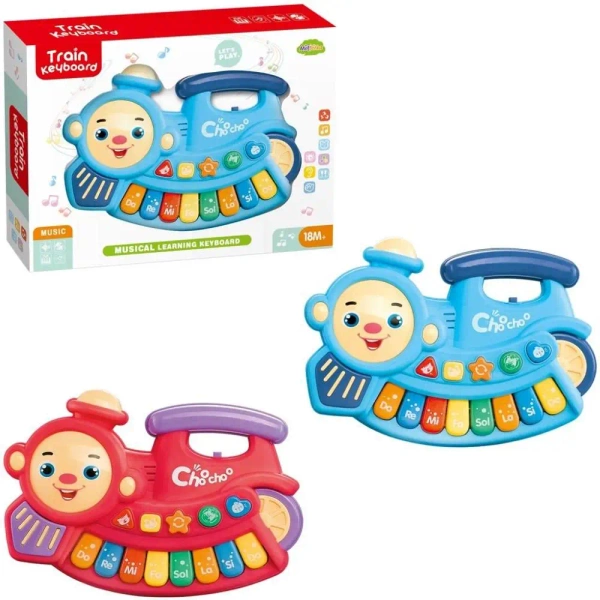 Pianinko w kształcie lokomotywy ze światłem i dźwiękami.