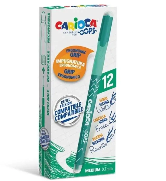 Długopis wymazywalny Oops zielony (12szt) - Carioca