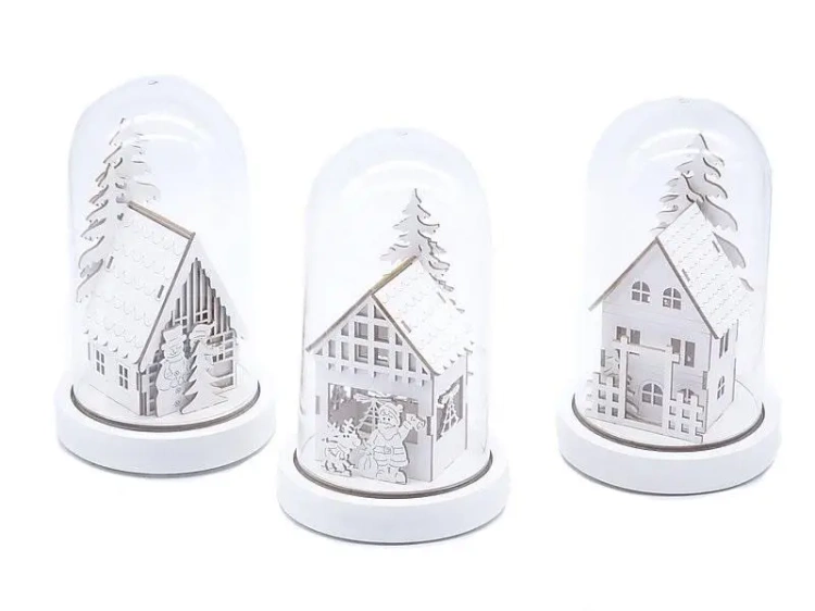 Lampka ledowa z elementami świątecznymi w obudowie ze szkła o wymiarach 19 x 11cm