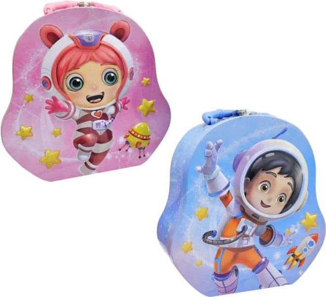 Metalowa, lakierowana skarbonka z motywem jednorożca dostępna w dwóch kolorach. Idealny pomysł na prezent, który uczy oszczędności i sprawia, że pieniądze są bezpieczne dzięki kłódce zamykanej na kluczyk.