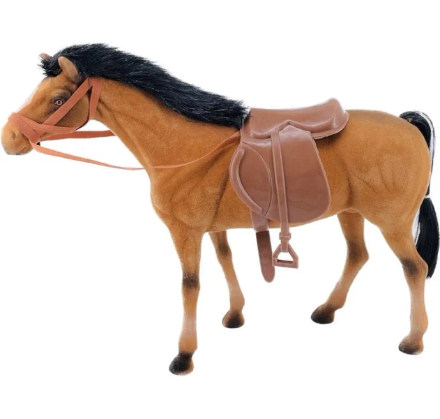 Konik szuka nowej stajni i przyjaciół. Zaopiekuj się nim już dziś. Konik pokryty miękkim materiałem - floką - posiada bujną grzywę i ogon wykonane ze sztucznego włosia oraz siodło i lejce
