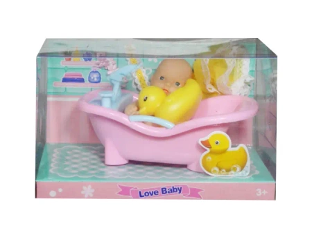 Laleczka wraz z wanienką oraz kaczuszką do zabawy w kąpieli.