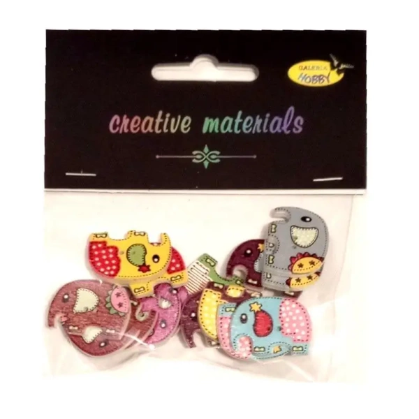 Odkryj drewniane guziki o wyjątkowym wzorze przedstawiającym słonia. Każdy z tych elementów ma wymiary 25x18 mm i znajduje się w zestawie składającym się z 15 sztuk.