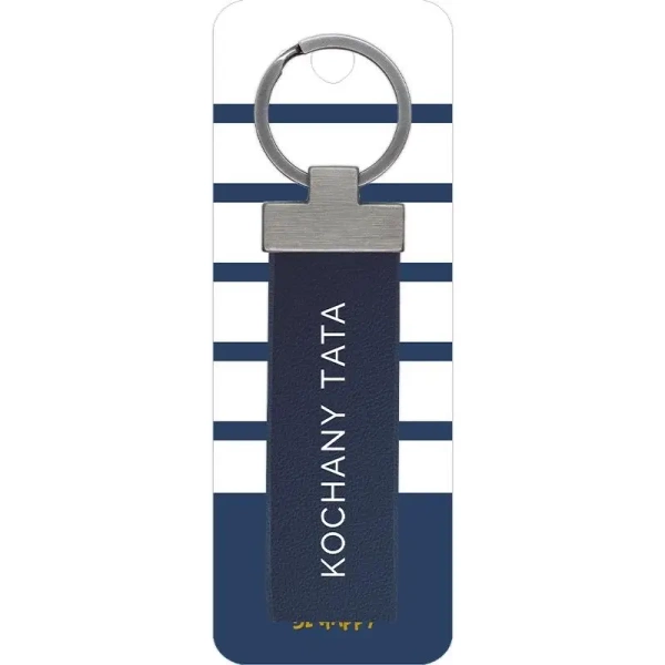 Brelok na prezent dla taty na dzień ojca urodziny z nadrukiem kochany tata brelok z napisem dla taty: specjalna dedykacja: kochany tata znakomity do kluczy, portfela, kluczyków samochodowych, plecaka czy bluzy kolor: niebieski doskonały upominek na dzień taty lub jego urodziny, imieniny i inne święta brelok wykonany z ekologicznej imitacji skóry wykonany z dbałością o każdy detal