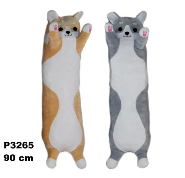 Oto puchaty przyjaciel idealny zarówno do zabawy, jak i odpoczynku - poduszka w kształcie psa. Ten uroczy element dekoracyjny ma długość 90 cm, co czyni go doskonałym kompanem do przytulania. Dzięki swojej wielofunkcyjności, idealnie sprawdzi się jako ozdoba pokoju dziecięcego oraz wygodny wałek pod głowę.