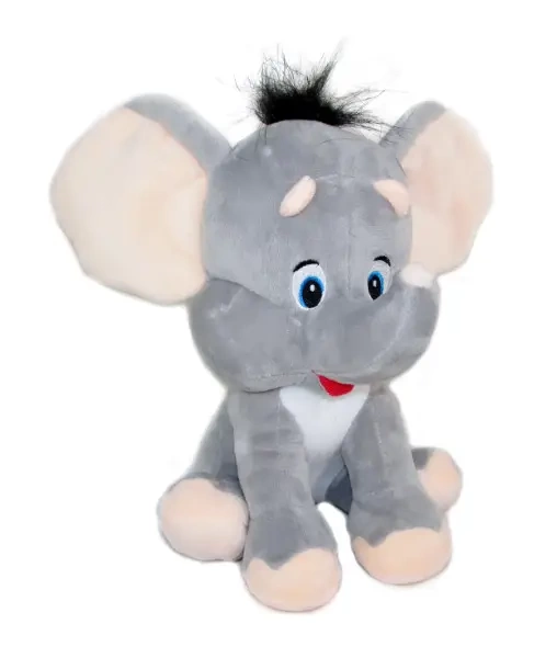 Zobacz tę uroczą maskotkę szarego słonika o wysokości 21 cm. Ta pluszowa zabawka przedstawia słonika w pozycji siedzącej, z dużymi uszami, pokrytego miękkim futerkiem na grzywie i w ogonie. Wyprodukowana z wysokogatunkowego, przyjemnego w dotyku materiału.