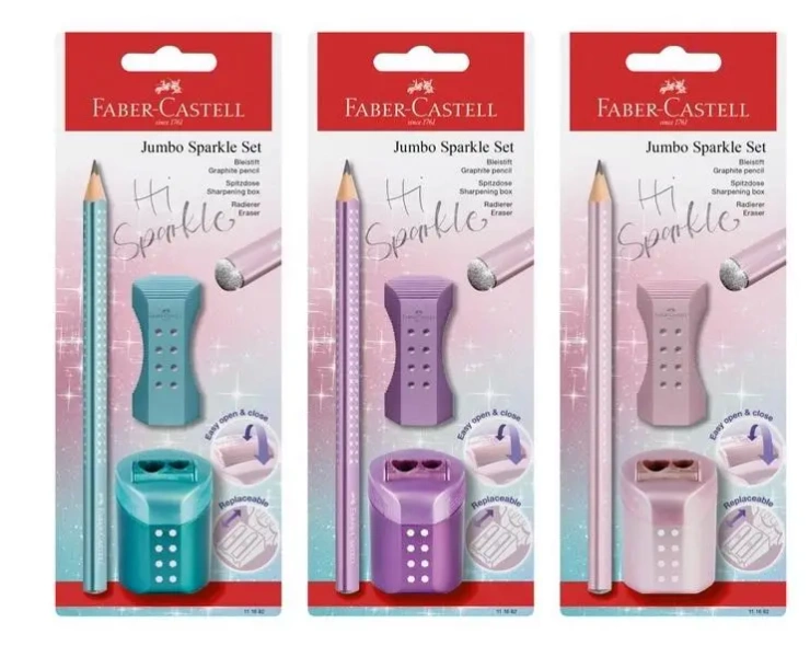 Zestaw Jumbo Sparkle ołówek + gumka + temper mix - Faber Castell