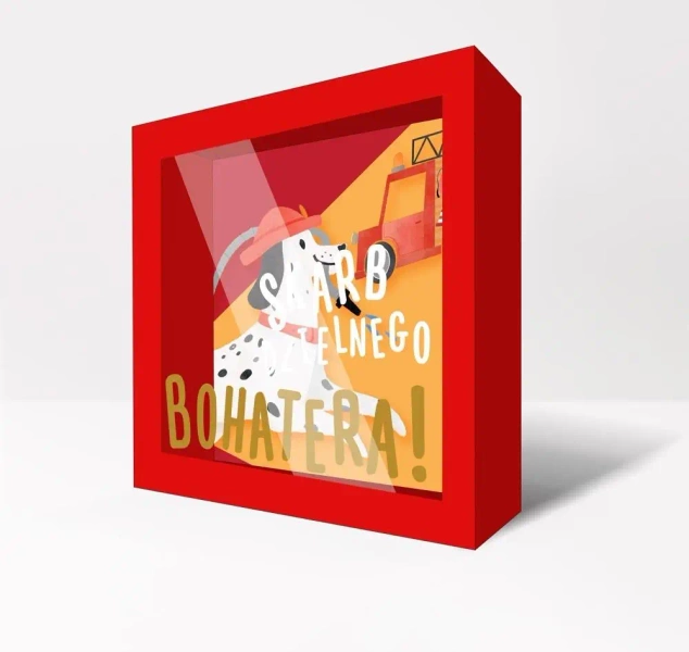 Skarbonka SKARBBOXY SBB-026 "Skarb bohatera" Skarbonka z serii SKARBBOXY to doskonały i niezwykły pomysł na prezent, który idealnie komponuje się w każdym wnętrzu, stanowiąc jednocześnie piękną dekorację. Wykonana z solidnej płyty MDF, skarbonka ta posiada specjalny otwór na górze do wrzucania monet i banknotów. Na szklanej szybce nadrukowany jest ciekawy napis pasujący do różnych okazji, a tło wewnątrz skarbonki zostało starannie zaprojektowane, prezentując przepiękną grafikę, podkreślającą wyjątkowy charakter skarbonki. Dzięki szklanej powierzchni można obserwować, jak skarbonka stopniowo wypełnia się oszczędnościami.. Tył skarbonki jest otwierany, umożliwiając wydobycie zgromadzonych środków na spełnienie jednych marzeń, jednocześnie zachęcając do oszczędzania na kolejne cele. Cechy szczególne: typ: skarbonka do postawienia, wielkość: 16 cm x 16cm, głębokość 5 cm okazja: ogólna