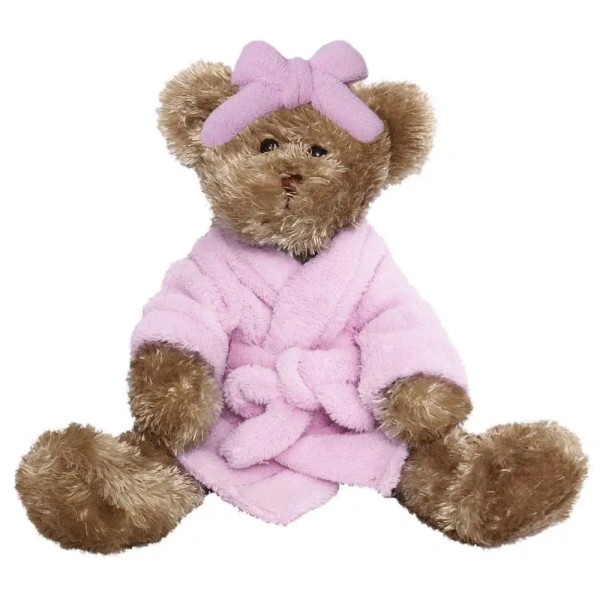 Klasyczny, niewielki miś ubrany w różowy szlafroczek, który można zdejmować. Całość wykonana z bardzo fajnego miękkiego pluszu.