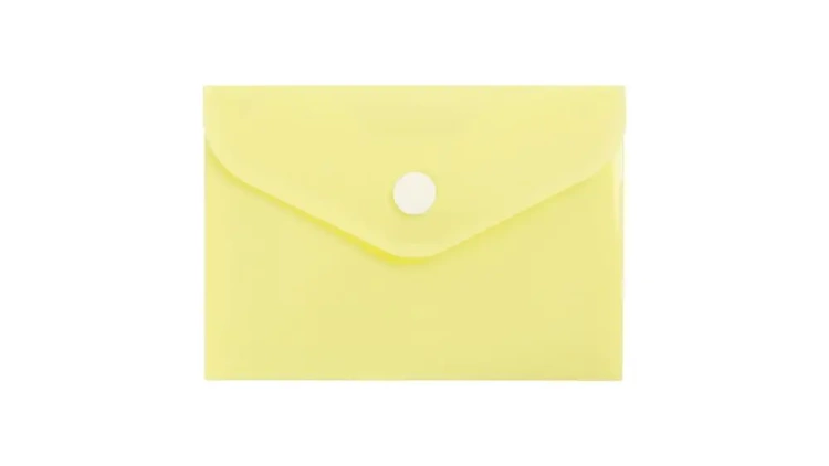 Prezentujemy pastelową żółtą teczkę kopertową, która została wykonana z wytrzymałego polipropylenu, zapewniając tym samym ochronę Twoich cennych drobiazgów. Jej kompaktowy format A7 idealnie sprawdzi się w przechowywaniu niewielkich elementów, takich jak gotówka, małe notatki czy inne drobne przedmioty.