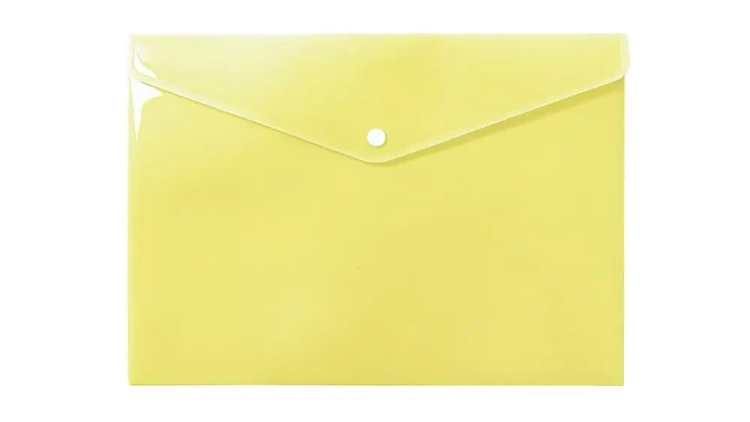 Prezentujemy funkcjonalną teczkę kopertową wykonaną z trwałego materiału PP. Jej pastelowy żółty odcień dodaje uroku i sprawia, że stanowi ona doskonałą alternatywę dla tradycyjnych teczek. Zamknięcie na wygodny nap skutecznie chroni zawartość, pomagając uniknąć niechcianego wysypania dokumentów.