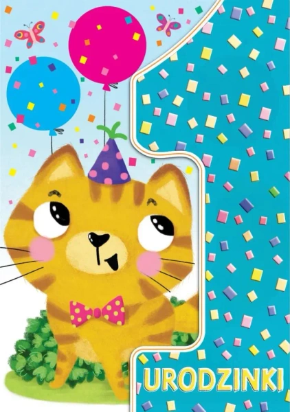 Karnet A5 Urodziny roczek - Kotek - Henry