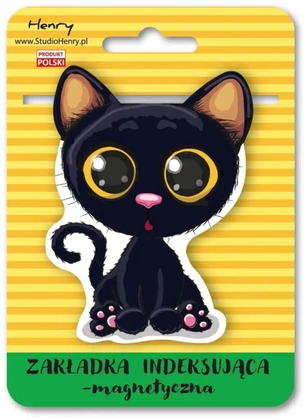 Magnetyczna zakładka do książki na blistrze zapakowana w woreczek foliowy z euro zawieszką.