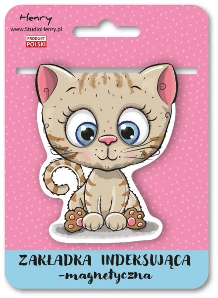 Magnetyczna zakładka do książki na blistrze zapakowana w woreczek foliowy z euro zawieszką.