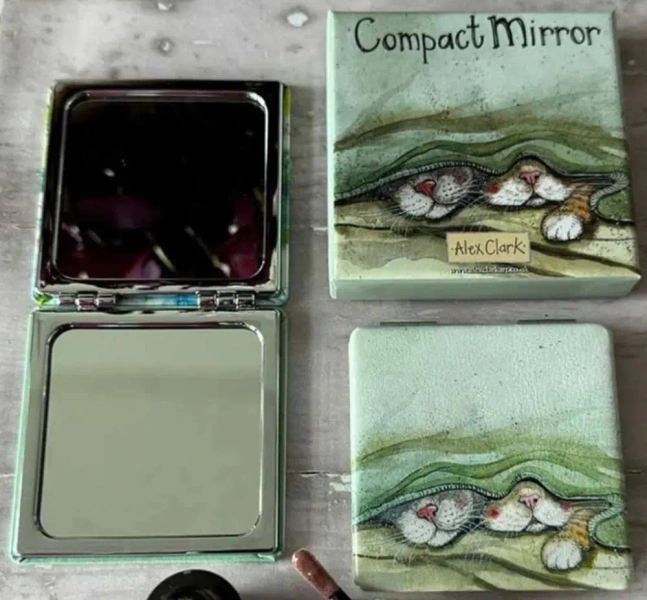 To śliczne kompaktowe lusterko jest na tyle poręczne, że zmieści się nawet w małej torebce bądź kieszeni. Zawiera dwie idealne do poprawek strony, w tym jedną powiększającą, która umożliwia precyzyjną aplikację. Zapakowane w ilustrowane pudełko prezentowe. Zapinane na zawiasy i ukryty magnes. Wykonane ze skóry wegańskiej, metalu i szkła. Rozmiar: 70 mm x 70 mm.