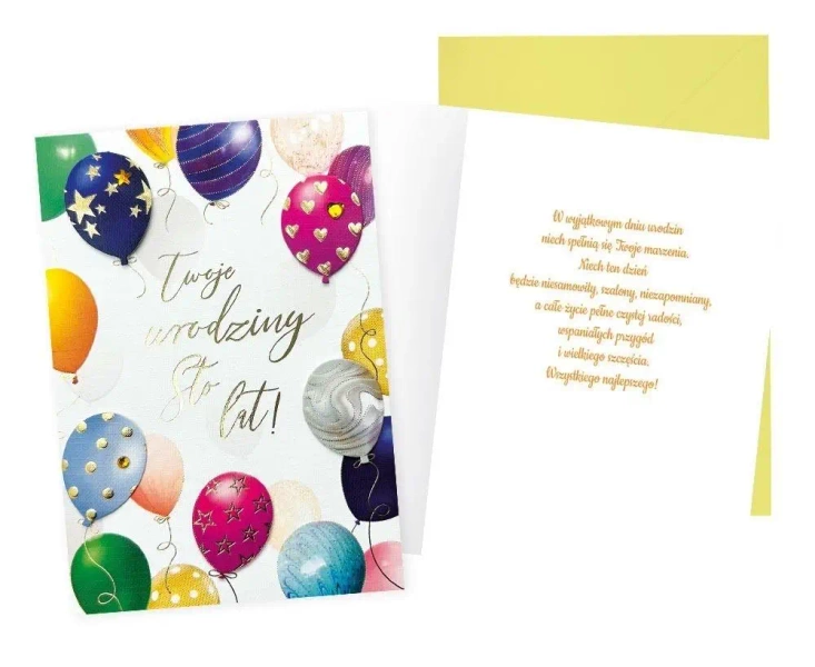 Kartka Dream Cards "Twoje urodziny" DK-1067 Kartka B6 z ozdobnej serii Dream Cards na urodziny - nieduża, ale robi wrażenie dzięki atrakcyjnej kolorystyce i ciekawym zdobieniom. To idealny wybór łączący przyjazną cenę z jakością. Cechy szczególne: wielkość: B6, 16.6 x 11.7 cm po złożeniu, koperta: w zestawie, kolorowa, zdobienia: kolorowe, różnorodne, bogate (w zależności od wzoru: przyklejane dekoracje, elementy biżuteryjne, odstawniki, metaliczne folie, tłoczenia itp.), okazja: urodziny