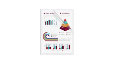 Dodatkowym atutem tej ofertówki jest starannie zaokrąglony prawy górny róg, który zapewnia estetyczny wygląd oraz bezpieczeństwo użytkowania. Produkt dostępny w formacie A4, co czyni go idealnym uzupełnieniem każdej prezentacji lub dokumentacji biurowej.