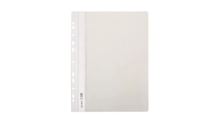Ten skoroszyt został wyprodukowany z solidnej folii PVC, oferując przezroczysty przód i kolorowy tył. Dzięki europerforacji, można go łatwo wpiąć do segregatora z dowolnym rodzajem ringów. Wewnątrz znajduje się klasyczny mechanizm z wąsem i listwą, który skutecznie zabezpiecza dokumentację; długość wąsa wynosi 16,5 cm.