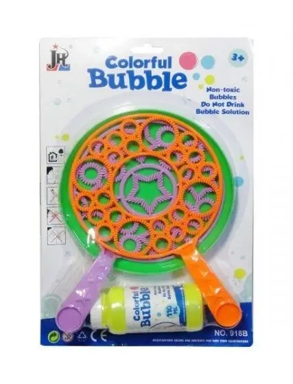 Zabawka do baniek mydlanych. Odkręć część z płynem do baniek. Wlej płyn do podstawki. Zanurz w płynie część z kijkiem następnie wyciągnij i dmuchaj lub machaj, wtedy zaczną pojawiać się bańki. Zabawka zapakowana w kartonową podstawkę z przezroczystym kloszem. Produkt dla dzieci od 3 lat. Podane wymiary są wymiarami opakowania.
