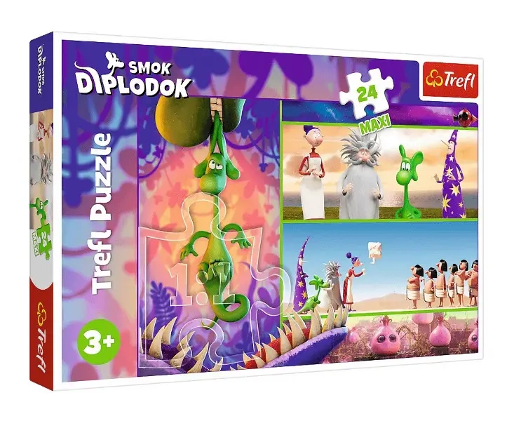 Ciekawski Smok Diplodok to puzzle dla maluchów, składające się z 24 bardzo dużych elementów. Zostały zaprojektowane z myślą o małych fanach bajki Smok Diplodok. Po ułożeniu układanki powstanie duży obrazek o wymiarach 600x400 mm.