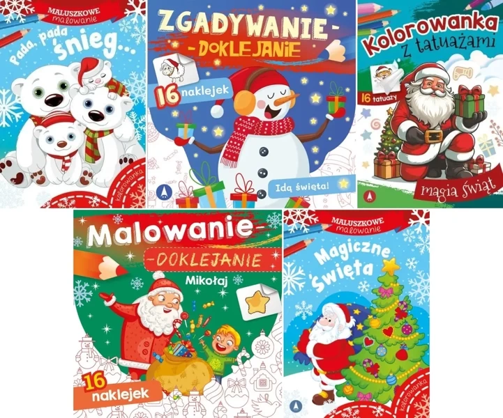 Prezent Świąteczny dla Dzieci. Kolorowanki z naklejkami GOTOWY ZESTAW 5 el. - praca zbiorowa